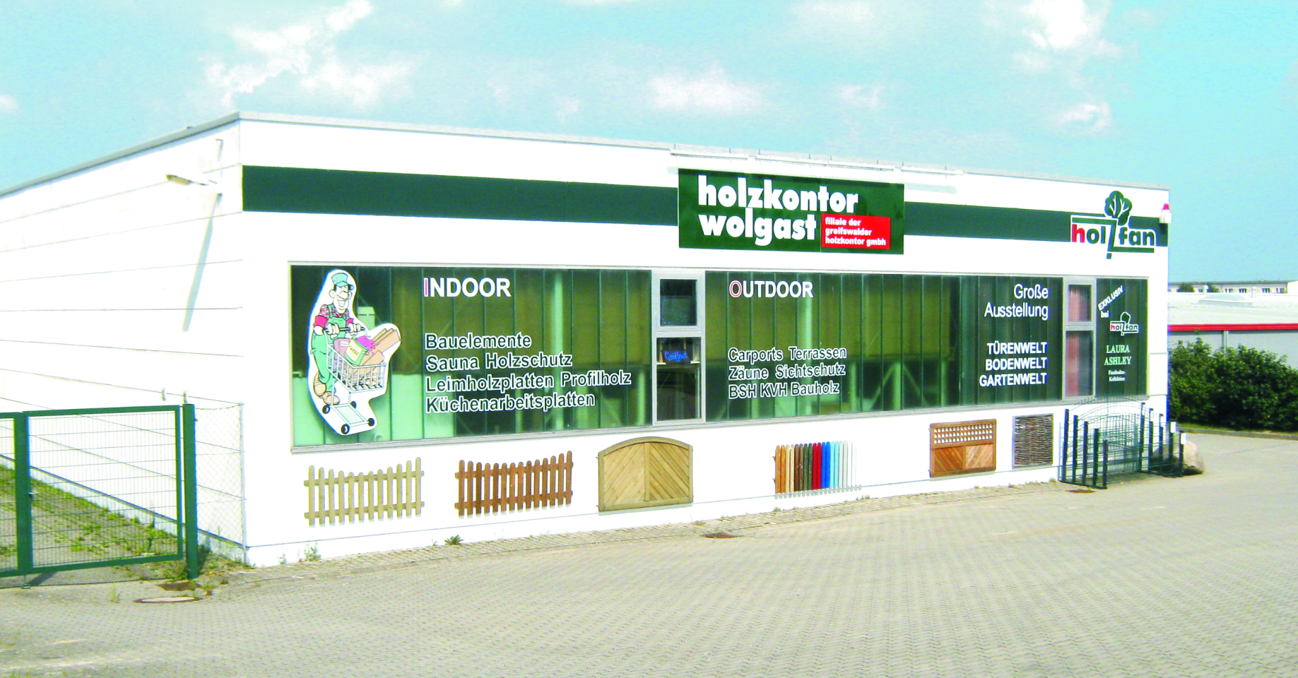 Im Jahr 2006 kam dann die Filiale in Wolgast mit einem verstärkten Sortiment im Bereich Innenausbau – Parkett, Laminat und Naturholzdielen, mit der Möglichkeit des Plattenzuschnitts und einer Ausstellung für Innentüren hinzu. Es werden Leimholzplatten, MDF, OSB, Sperrholz und auch Küchenarbeitsplatten sowie Möbelbauplatten lagerhaltend angeboten.